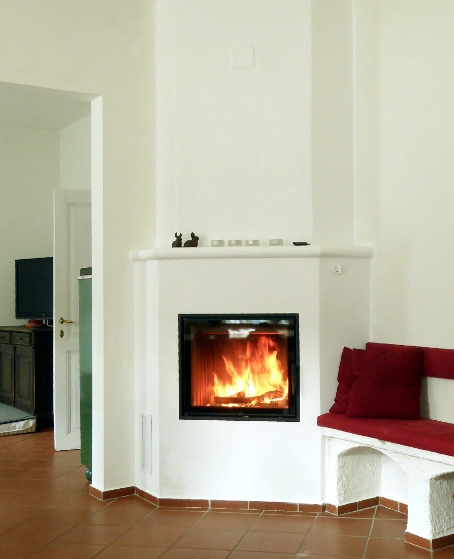 Auf Wunsch auch mit nachgestalteten Schamottzügen oder Nachheizkasten oder spezielle Speichersteine um den Wirkungsgrad, die Speicherleistung und somit die Heizleistung zu steigern.
